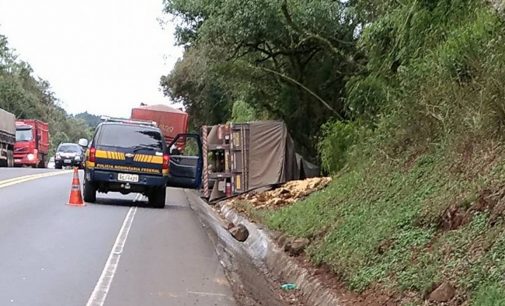 Mallet: caminhão furtado é recuperado após tombar às margens da BR 153 na Colônia Vera Cruz