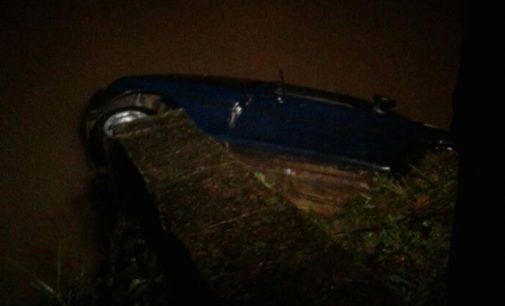 Veículo sai de pista na BR 153 no viaduto de Cruz Machado