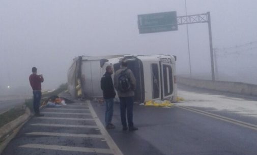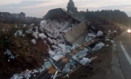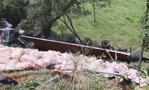 Motorista do caminhão com pacotes de arroz que tombou na Serra do Leão é identificado