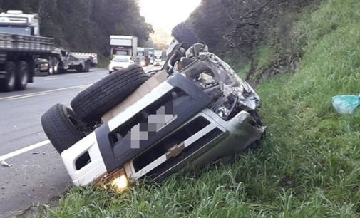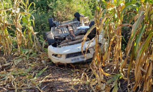 Veículo sai de pista e capota na BR 153 em General Carneiro