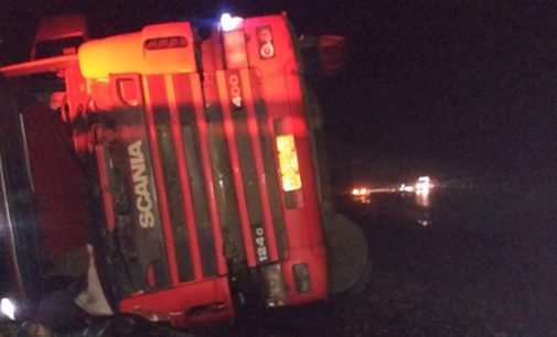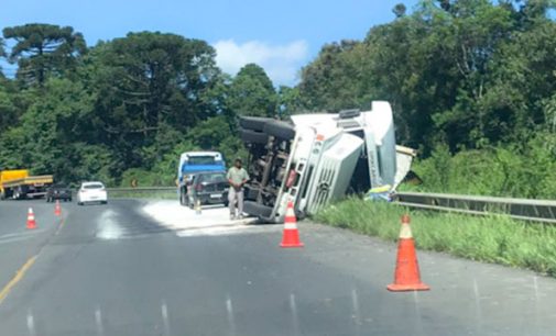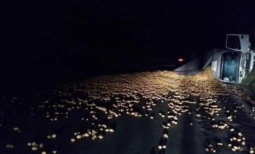 Caminhão de batatas tomba na BR 476 em Paulo Frontin