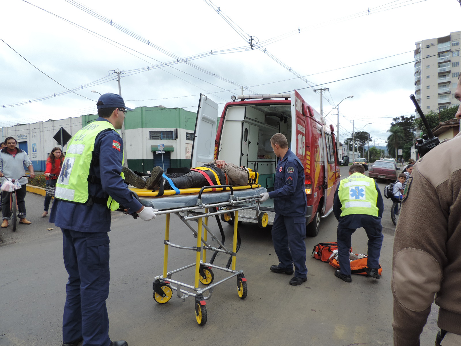 Uma equipe do Corpo de Bombeiros de Porto União, junto com a Polícia Militar de Porto União, deu os primeiros atendimentos a uma ciclista que foi atingida por um veículo Monza da cidade de Guamiranga Paraná.