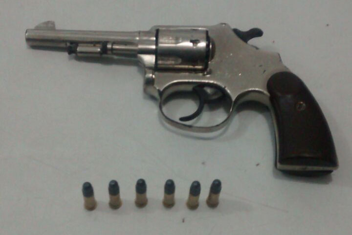 Nesta abordagem realizada ás 21h50, na rua Eduardo de Carvalho, bairro Rio D’Areia, os policiais encontraram um revolver marca Rossi, calibre 22, com seis munições intactas, no chão.