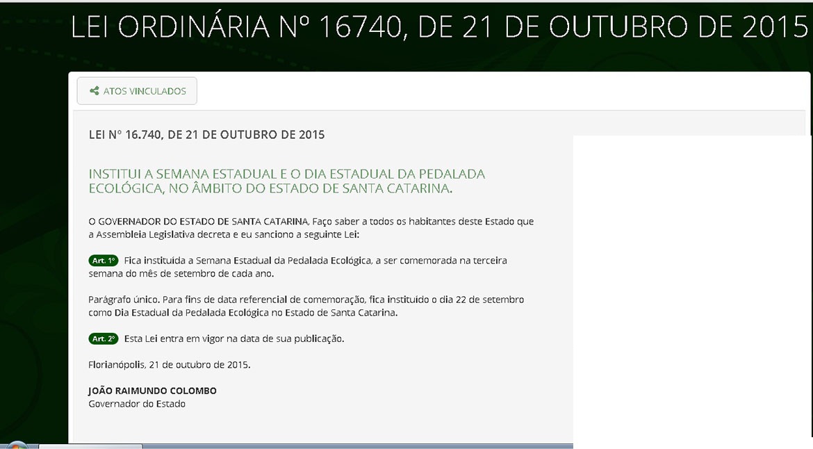 A informação foi repassada via rede social, por Facebook e WhatsApp dos alunos. O projeto denominado “Pedalada Ecológica”, foi aprovado na Alesc e agora é lei em todo território catarinense.