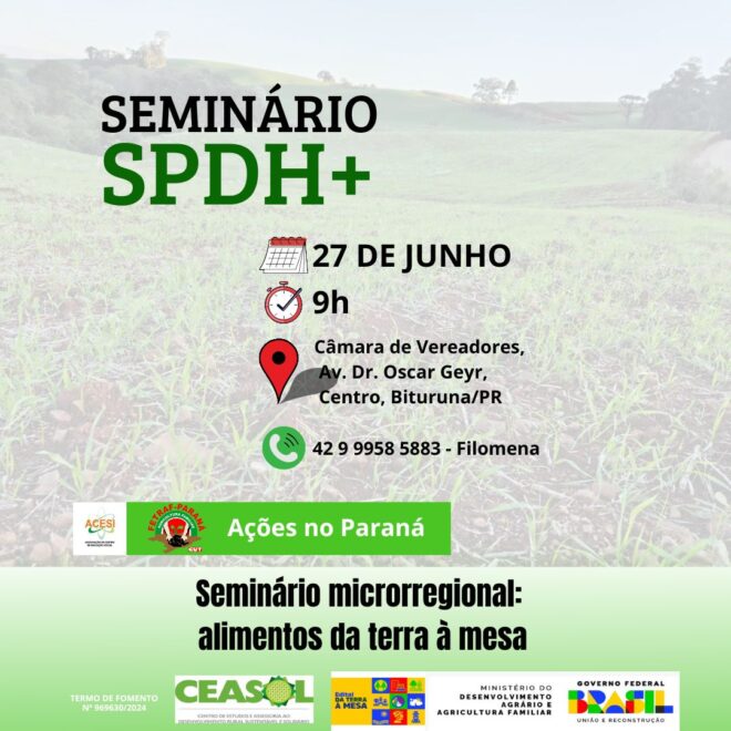 Nesta sexta-feira, dia 27 de Junho, a partir das 9 horas da manhã, a Câmara de Vereadores de Bituruna será palco de um importante Seminário Regional sobre o SPDH+ (Sistema de Plantio Direto com Hortaliças e outras culturas). A iniciativa é promovida pelo Sindicato dos Agricultores da Agricultura Familiar de Bituruna, com foco em promover práticas agrícolas mais sustentáveis e produtivas para a região.