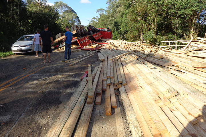 Segundo informações, o caminhão com placa de Cruz Machado saiu da estrada asfáltica nova amada, mais conhecida como “pedreira”, e teve toda a sua carga de madeira esparramada sobre a pista. O caminhão marca Volvo, só parou cerca de 150 metros do ponto, onde foi registrado o tombamento.