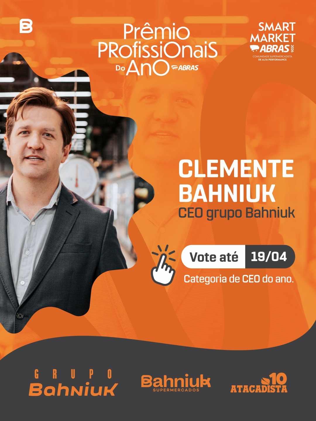 O Grupo Bahniuk tem um importante motivo para comemorar e compartilhar com toda a comunidade de União da Vitória e região. O CEO da empresa, Clemente Bahniuk, foi anunciado como finalista do Prêmio Profissionais do Ano ABRAS 2026, na categoria CEO do ano, uma das mais relevantes do setor supermercadista brasileiro.