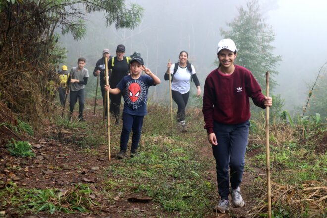 Cerca de 400 pessoas participaram da 3ª edição da Caminhada Ecológica e Turística do Km 13, realizada no domingo, dia 27, em Porto União. Mesmo com a chuva no início do dia, o entusiasmo do público se manteve durante os mais de 9 km de percurso inédito, que levou os caminhantes por mata nativa com árvores centenárias, cachoeiras, estradas e propriedades rurais. Ao longo do trajeto, também houve degustação de vinho colonial produzido na própria comunidade anfitriã.