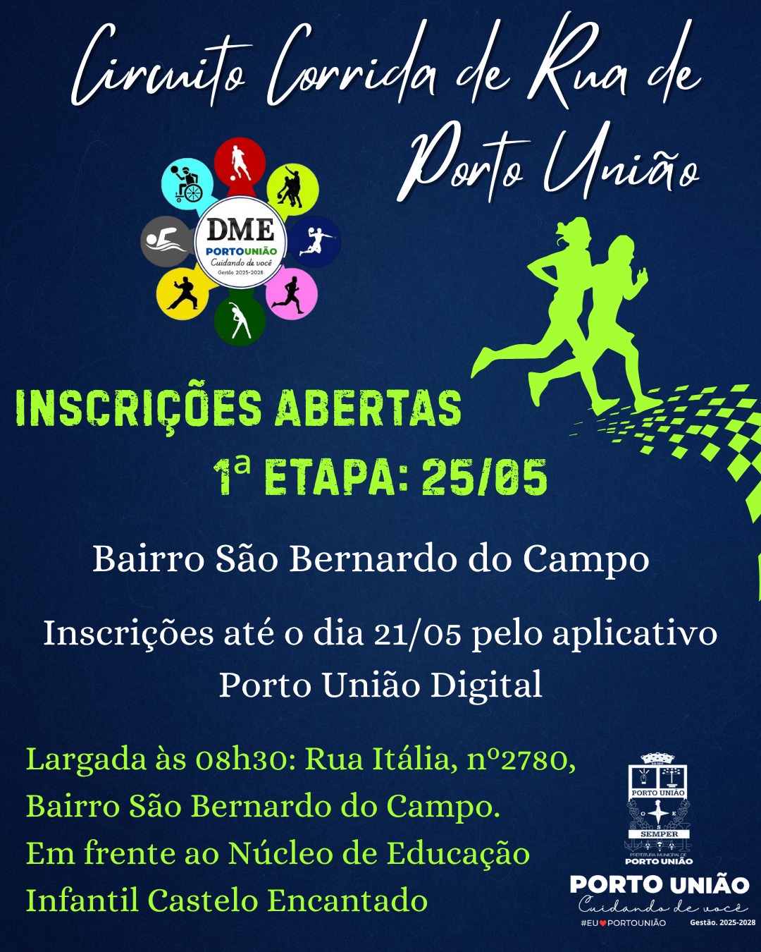 A primeira etapa será realizada no Bairro São Bernardo do Campo. As inscrições vão até o dia 21 somente pelo aplicativo Porto União Digital.