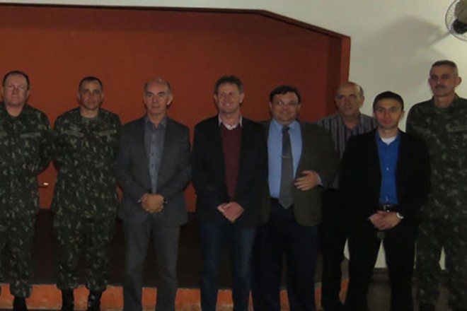 O prefeito de Porto União, Anízio de Souza, e o vice-prefeito Aloisio Salvatti participaram na noite de terça-feira, 29, de um encontro promovido pelo comandante do 5º Batalhão de Engenharia de Combate Blindado (5º BE CMD BLD), Coronel Franco Azevedo. O encontro, realizado no Círculo Militar, contou com a presença do chefe da 5ª Região Militar, conhecida como Heróis da Lapa, o General da Brigada, Luís Antonio Duizit Brito.