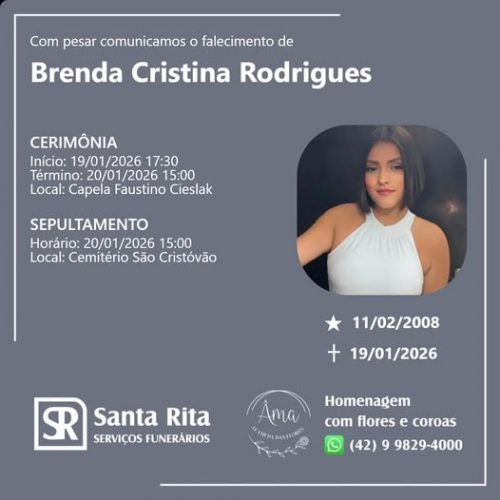A morte precoce da jovem Brenda Rodrigues, de apenas 17 anos, ocorrida nesta segunda-feira, 19, gerou grande comoção social e uma onda de revolta nas redes sociais em toda a região. Familiares da adolescente levantam a possibilidade de negligência médica no atendimento prestado à jovem na Unidade de Pronto Atendimento (UPA) do município, antes de sua internação hospitalar.