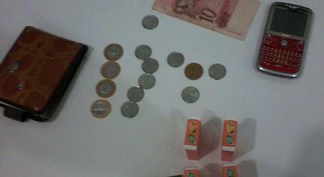 O abordado era exatamente quem estava portando uma arma de fogo durante o roubo. Diante das informações, foi feita uma busca pelo interior do Gol, onde foram localizados várias embalagens de pastilhas, doces , R$ 8,25 em moedas e R$10,00 em nota.