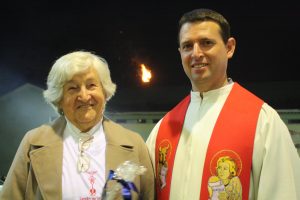 Madrinha da 82º Festa da Fogueira Barbara Holovaty e o padre Fábio Farias IMG_8333 » Rádio Colmeia FM