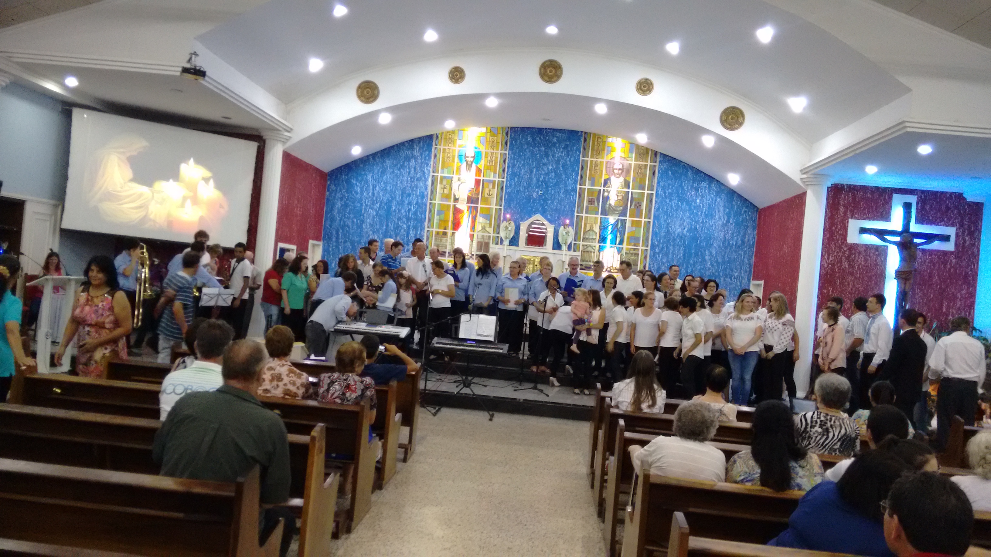 Ao final da Cantata de Natal, todos os grupos foram para frente do altar e cantaram em uma só voz, a tradicional música “Noite Feliz”.