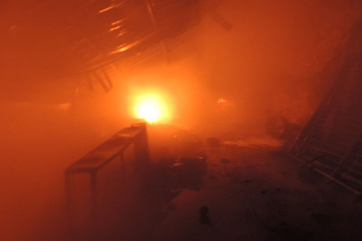 No vídeo feito pelo jornalismo da Rádio Colmeia, é possível ver a presença dos veículos para combater as chamas e ao fundo o incêndio no depósito.