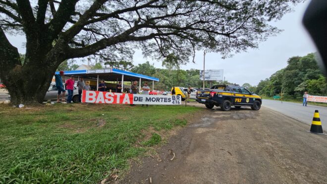 Na manhã deste sábado (12), a sociedade civil organizada realiza uma manifestação pacífica pedindo melhorias na BR-476. O protesto ocorre de forma intermitente, com bloqueios momentâneos na rodovia e operação no sistema “pare e siga”, garantindo a fluidez do tráfego com o acompanhamento da Polícia Rodoviária Federal (PRF) e da Polícia Militar.