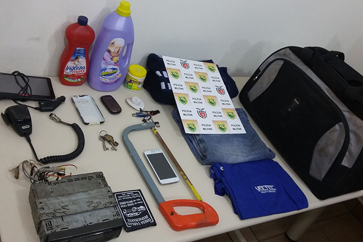 Contudo, assim que novamente avistaram as viaturas, jogaram alguns objetos no matagal e tentaram fugir. Ligeiramente a equipe os abordou, constatando que os objetos jogados eram produtos furtados no caminhão, sendo um pen drive, um GPS, uma mochila com roupas, um aparelho de som automotivo e mais alguns produtos que a equipe não conseguiu localizar.