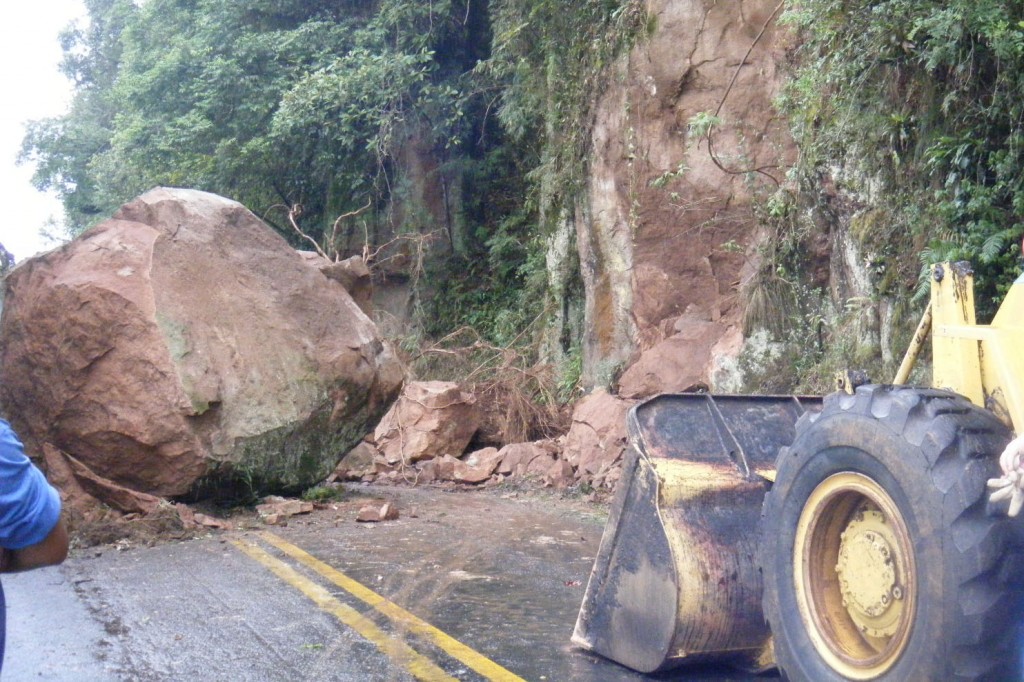 Nesta manhã de sexta-feira, (28), as equipes que trabalham para retirada da pedra e arrumação da eletricidade, pretender liberar a pista durante a tarde.