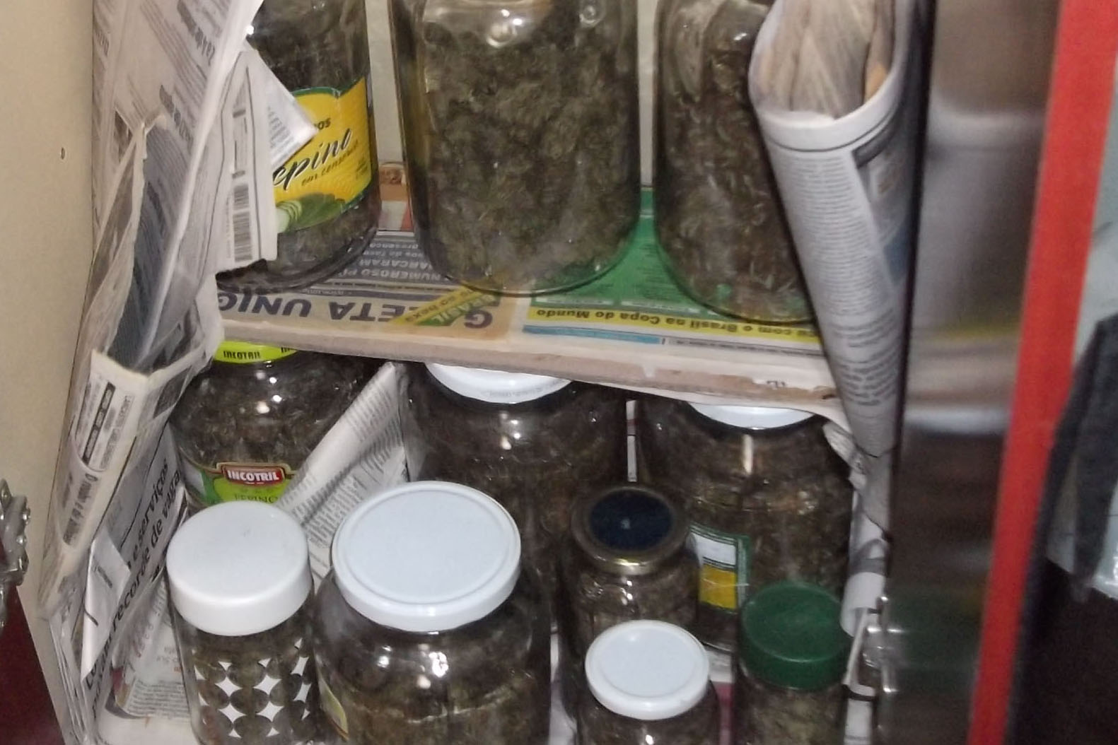 Na operação policial foi encontrado na residência 430 g, de maconha, um pé de maconha com cerca de 60 cm de altura e 13 potes de vidro contendo produtos acondicionados para o processamento da droga, e algumas sementes da droga e ainda uma estufa elaborada de forma artesanal, onde as plantas eram cultivadas.