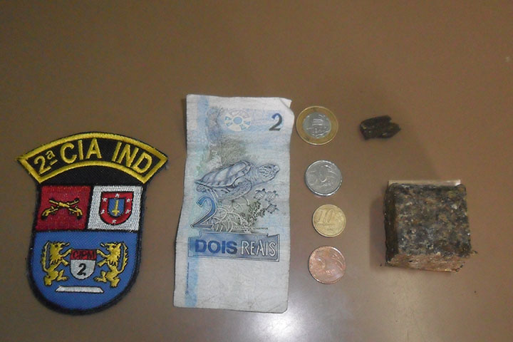Diante das informações os PMs deslocaram ao local indicado e abordaram os dois suspeitos, na revista pessoal o masculino de 51 anos, foi encontrado no bolso do calção uma quantidade de entorpecente tipo maconha, na sequência os PMs localizaram no interior da casa outra porção de maconha, preparada para o comércio, ainda uma caixa de ferramentas e uma caixa de som, objetos com procedência duvidosa.