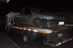 Uma equipe da Policia Militar de Bituruna estava realizando um patrulhamento pela comunidade de Santo Antônio do Iratin, no dia 30, quando avistaram um veiculo atrás da igreja abandonado. O veiculo era uma caminhonete Fiat/Strada, com a placa ANO-5496, de Pinhão (PR), que havia sido furtada no dia 19 de outubro.