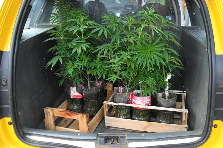 Foram apreendidos também 10 “pés de maconha”, com aproximadamente 80 cm de altura.