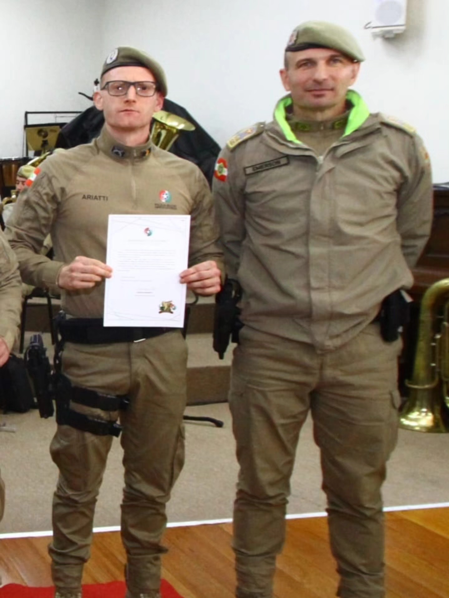 Entre os agraciados estava o cabo Marcos Aurélio Ariatti, da 2ª Companhia do 3º Batalhão de Polícia Militar de Porto União. Ele foi reconhecido pelo alto grau de profissionalismo, competência e comprometimento, qualidades que contribuem diretamente para a eficiência dos serviços prestados à população e para a valorização da imagem da corporação em Santa Catarina.