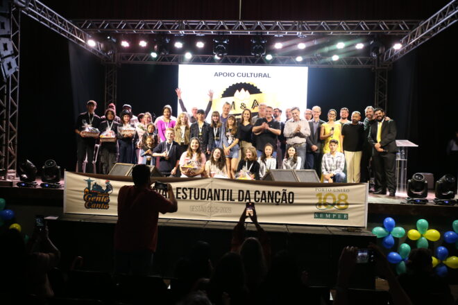 Na noite de ontem, o palco do histórico Cine Teatro Ópera foi tomado pelo talento e pela emoção durante a realização do Festival Estudantil da Canção “Tanta Gente Canta”, que reuniu 16 jovens cantores das escolas do município de Porto União. O evento encantou o público com performances cheias de sensibilidade e dedicação.