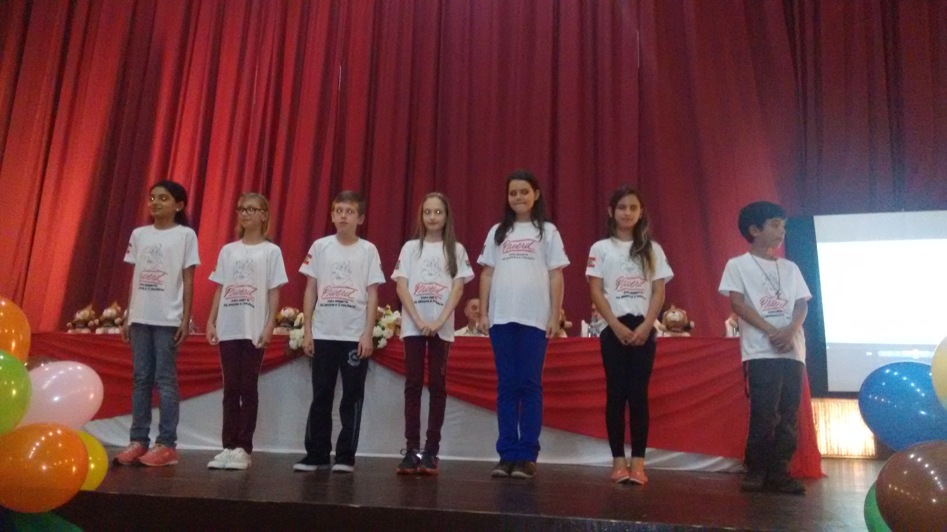 Depois da formação foi entoado o Hino Nacional Brasileiro, e depois foi chamado os nove alunos que foram os vencedores na produção da redação com o tema Proerd, drogas e violência, onde nove alunos foram os vencedores.