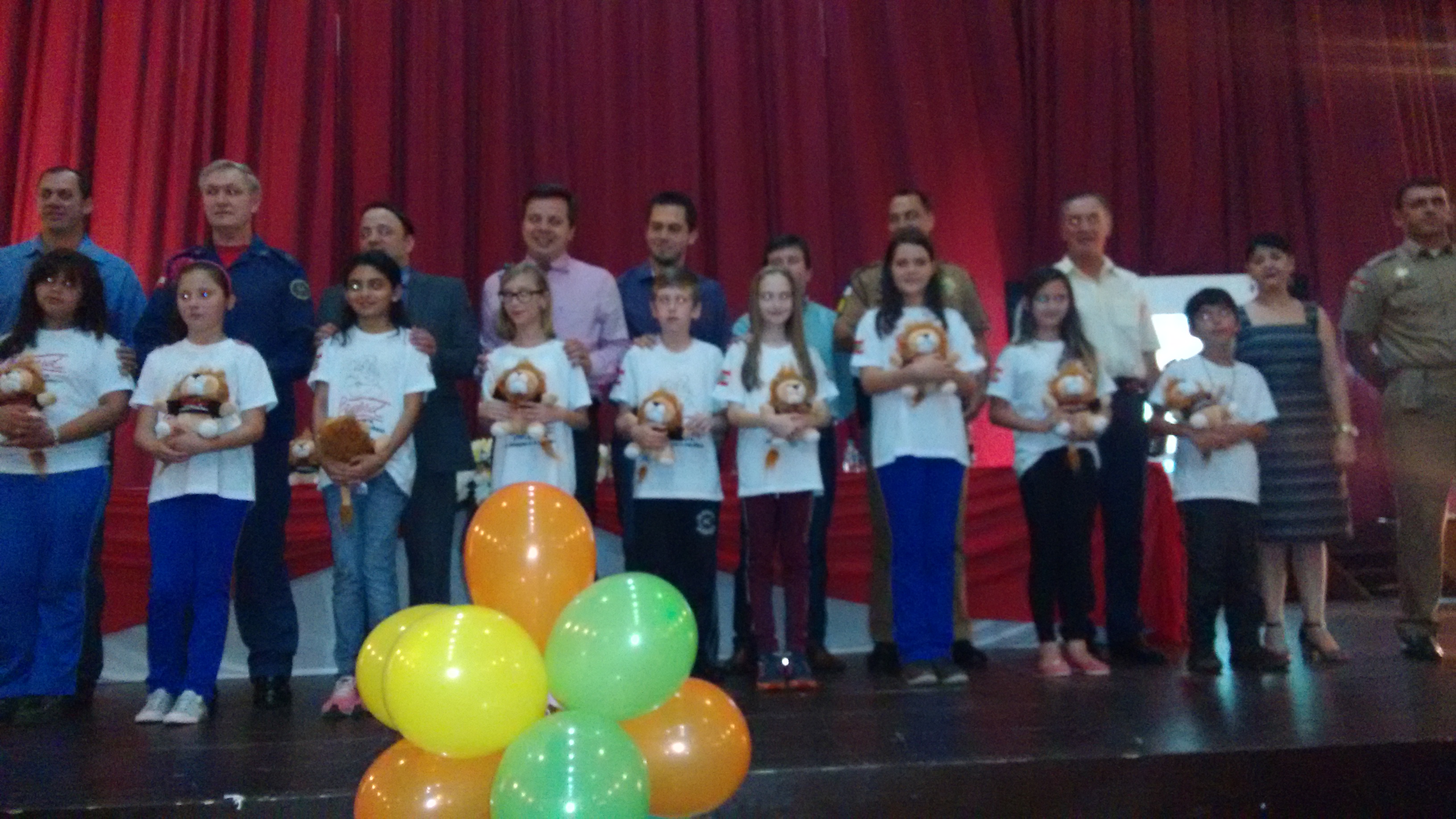 Depois da leitura da redação foi entregue para os nove alunos como forma de prêmio o leão D.A.R.E.