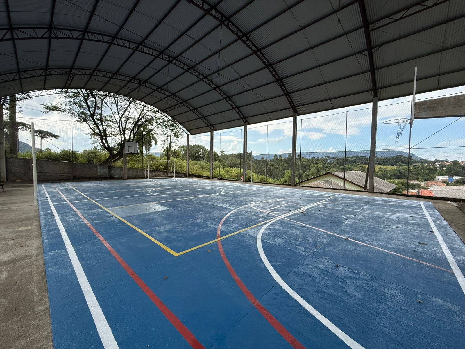 Agora, com a nova pintura emborrachada, o ambiente se torna mais adequado para a prática esportiva, reduzindo impactos e contribuindo para a prevenção de lesões.