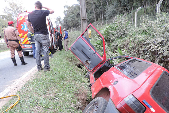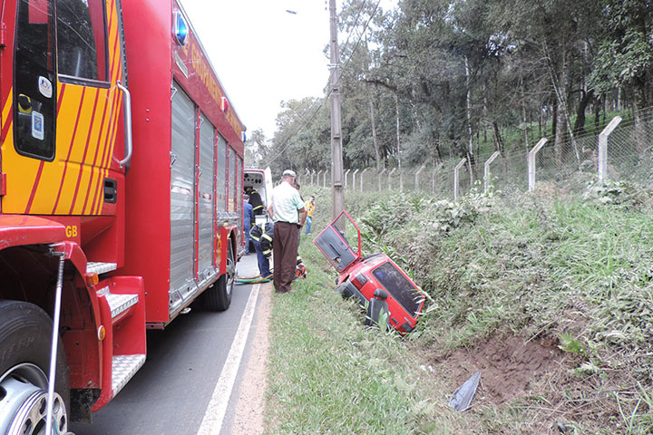 As equipes do Corpo de Bombeiros de União da Vitória com o apoio do Corpo de Bombeiros de Porto União prestaram atendimento no bairro Dona Mercedes na tarde desta quinta-feira, 13 de agosto, onde um veículo Fiat Uno com placa de Porto União ACK – 9223 saiu da pista.