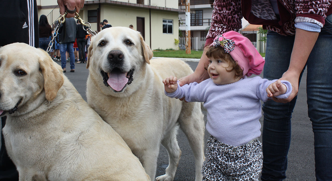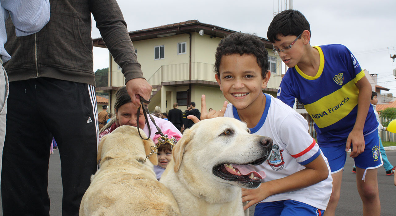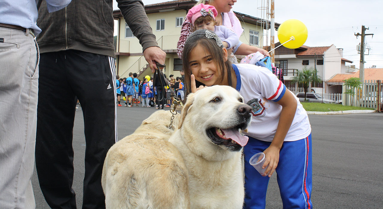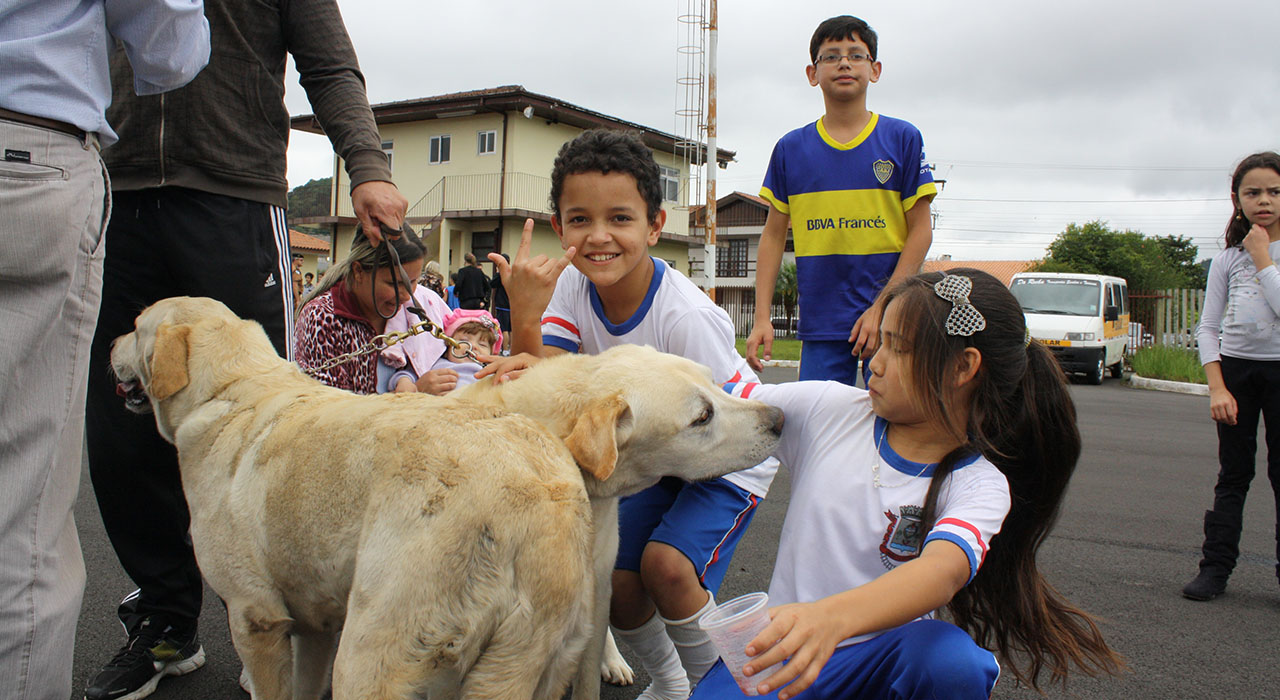 As crianças também puderam passar a mão e fazer uma foto com os dois caos da Polícia Militar, que são treinados para a localização de drogas em operação.