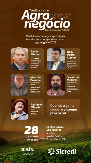 O Sicredi Centro Sul, uma das principais instituições financeiras cooperativas do Brasil, promove HOJE um evento especial em Prudentópolis, focado nas tendências do setor agropecuário para o ano de 2025. O evento, que reune empresários, produtores rurais, profissionais do agronegócio e autoridades locais, tem como principal objetivo debater as inovações tecnológicas, as oportunidades de crescimento e os desafios que o setor enfrentará nos próximos anos.