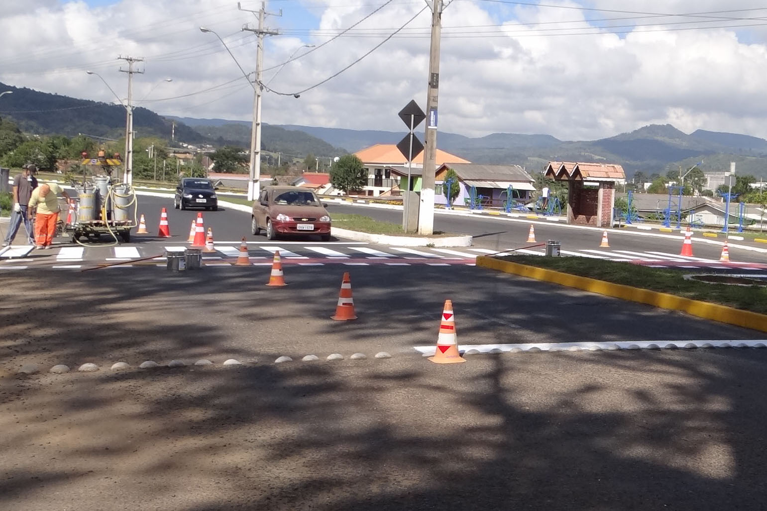 Além do material manual utilizado em alguns pontos, a equipe conta com a máquina de pinturas, que agiliza bastante o serviço. O resultado é a segurança da população e a economia dos cofres públicos.