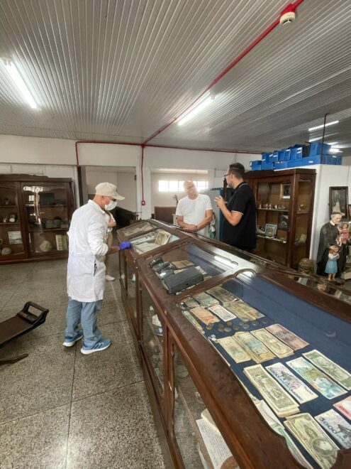 Os técnicos Marcelo de Almeida e Reinilton Matos de Assis, da Fundação Catarinense de Cultura (FCC), visitaram Porto União na manhã desta quinta-feira (13). No andar superior da Rodoviária Municipal vistoriaram o acervo do Museu Salustiano Costa Junior. Em que pese as condições de espaço e do próprio acervo não serem as mais adequadas, eles destacaram a riqueza das peças existentes.