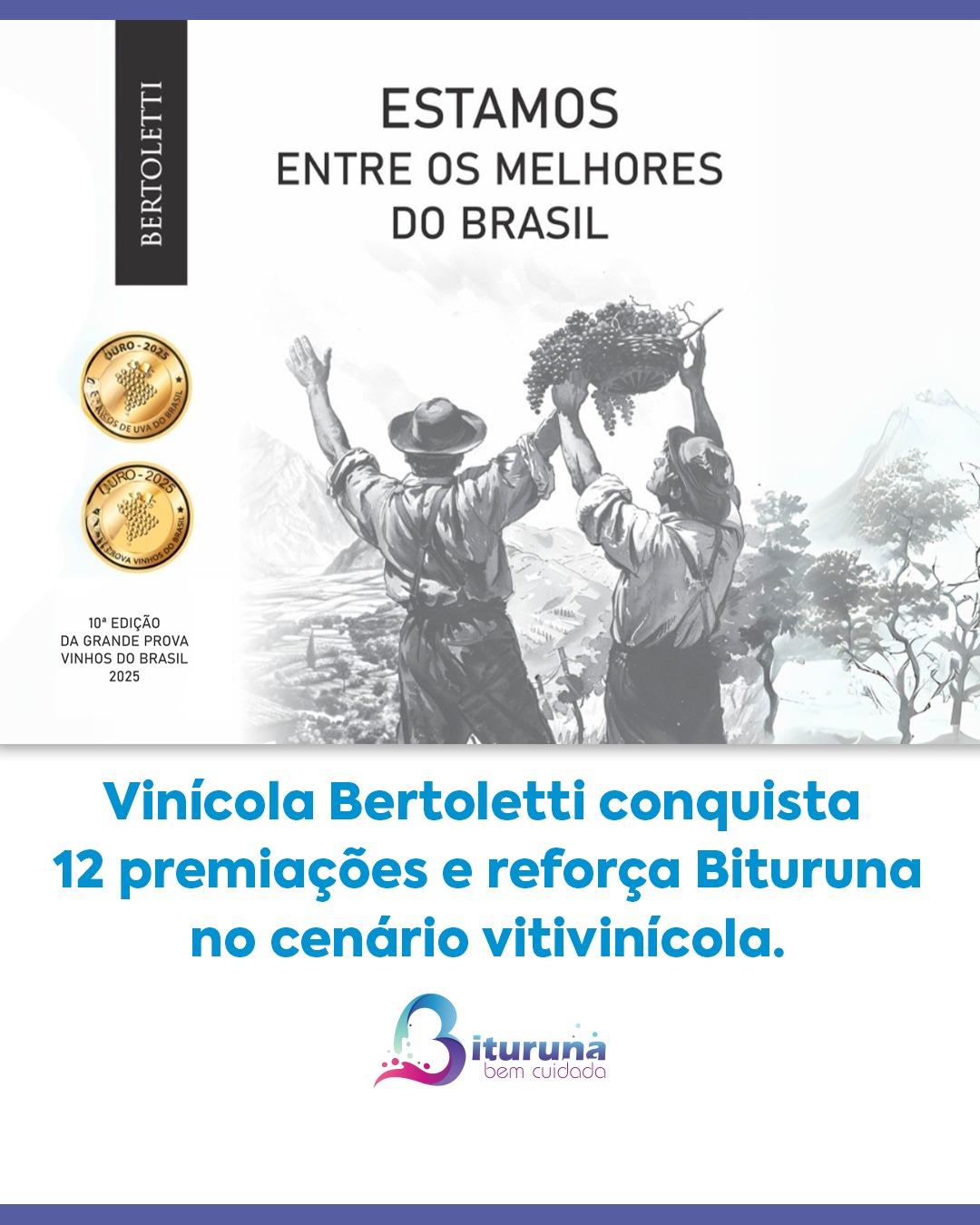A Vinícola Bertoletti celebra um feito histórico ao conquistar 12 premiações na 10ª edição da Grande Prova Vinhos do Brasil, uma das mais importantes competições do setor no país. Entre os produtos premiados estão vinhos, espumantes e sucos que expressam a qualidade e o potencial do “terroir” biturunense.